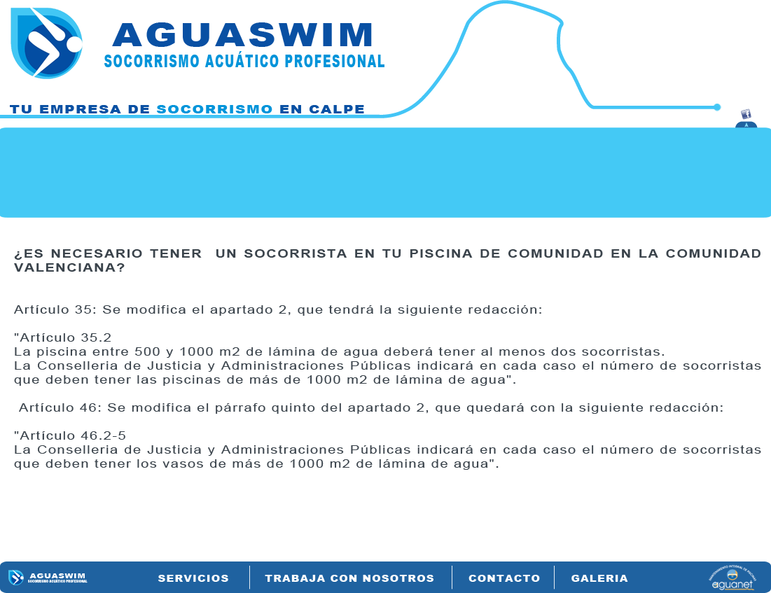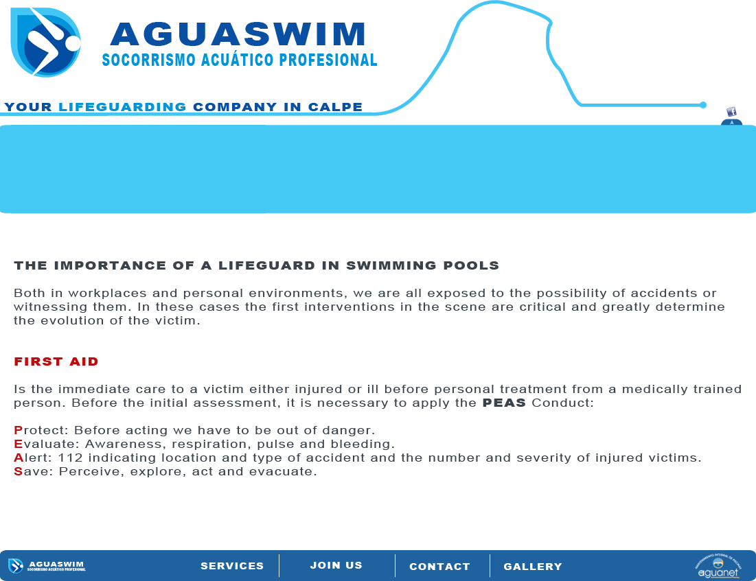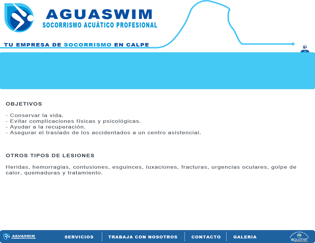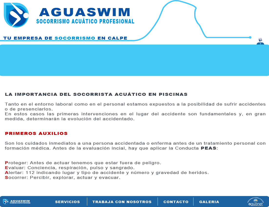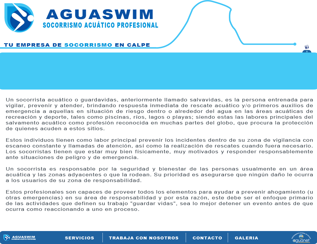AguaSwim socorrismo acuático profesional   TLF: 630 464 803  e-mail: info@socorrismoaguaswim.com  Aptdo 169, Calpe, 03710 (Alicante)  | Creado por US2 design V.62013