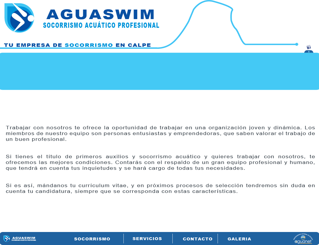 AguaSwim socorrismo acuático profesional TLF: 630 464 803 e-mail: info@socorrismoaguaswim.com Aptdo 169, Calpe, 03710 (Alicante) | Creado por US2 design V.62013